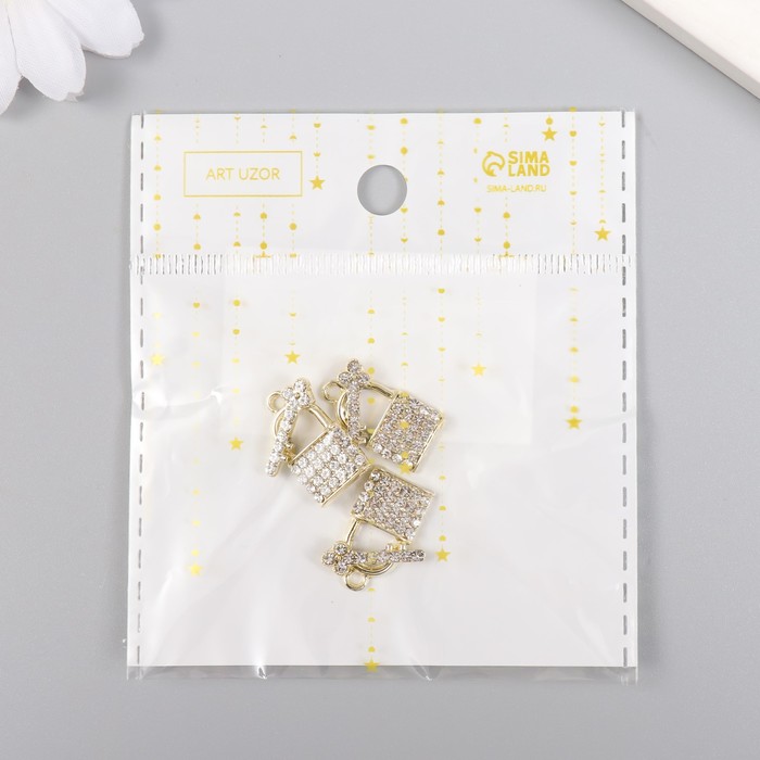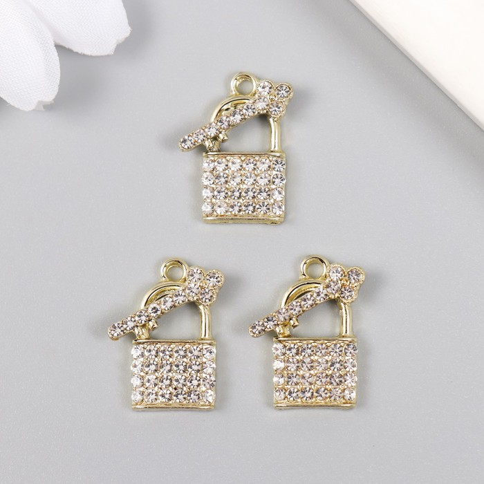 Декор для творчества металл, стразы «Замочек с ключиком», 1.5×1.9 см, МИКС — Характеристики