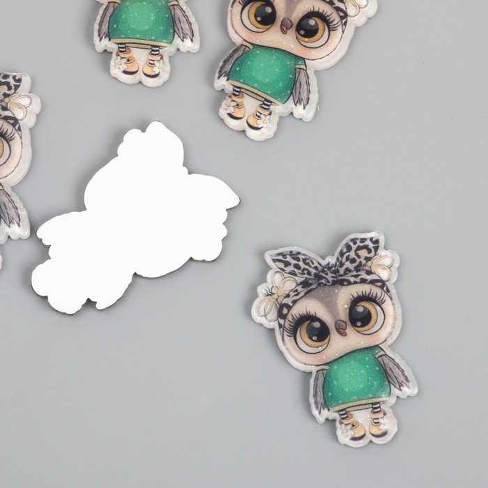 Декор для творчества акрил «Совушка в зелёном платье в бандане», 2.5×3.4 см