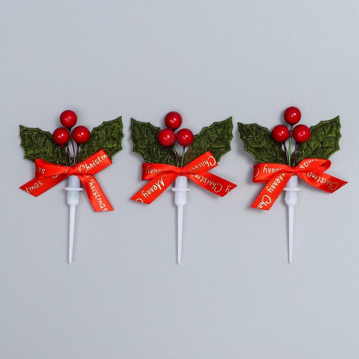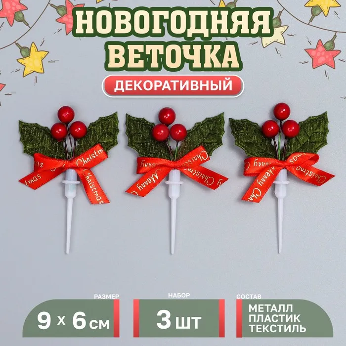 Декор для творчества «Новогодняя веточка», в наборе 3 шт., размер 1 шт. — 9 × 6 × 1 см