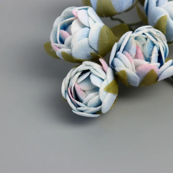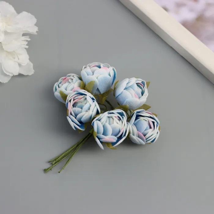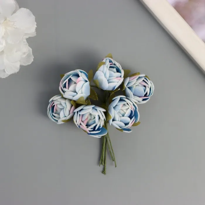 Декор для творчества «Пионы», бело-голубой, (1 набор=1 букет), в букете 6 шт., 2.5×10.5 см
