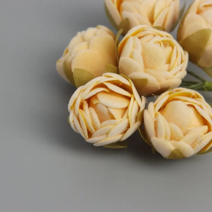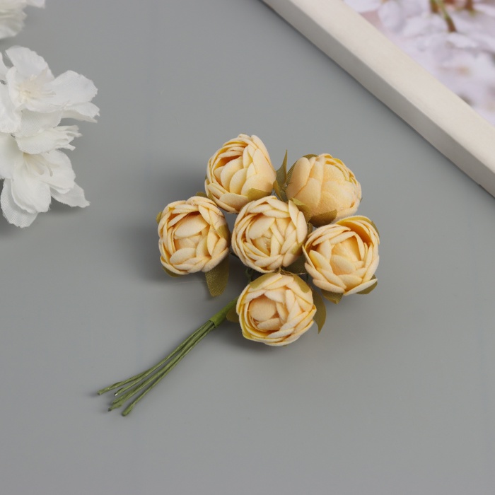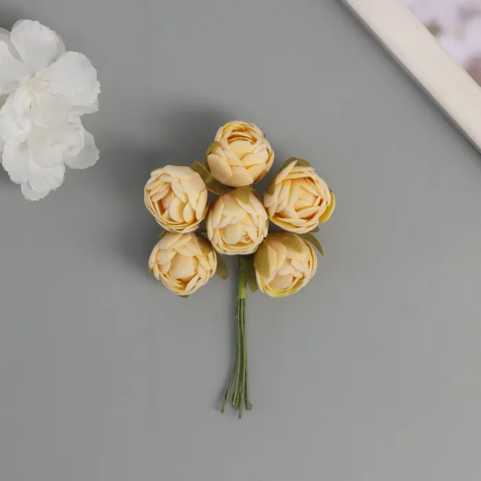 Декор для творчества «Пионы», жёлтые, (1 набор=1 букет), в букете 6 шт., 2.5×10.5 см