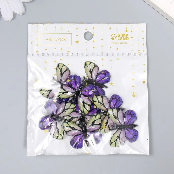Декор для творчества пластик «Бабочка, фиолетово-жёлтые крылья», 2.5×3.2 см — Характеристики