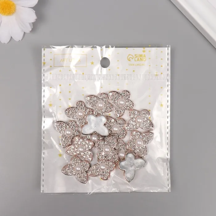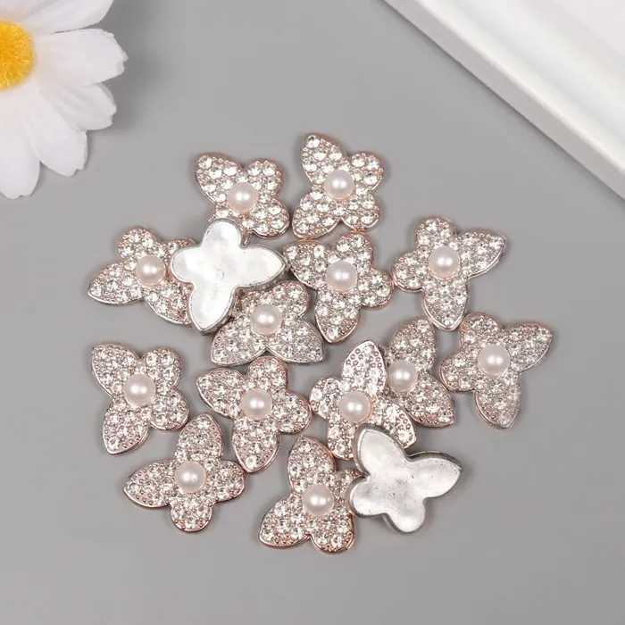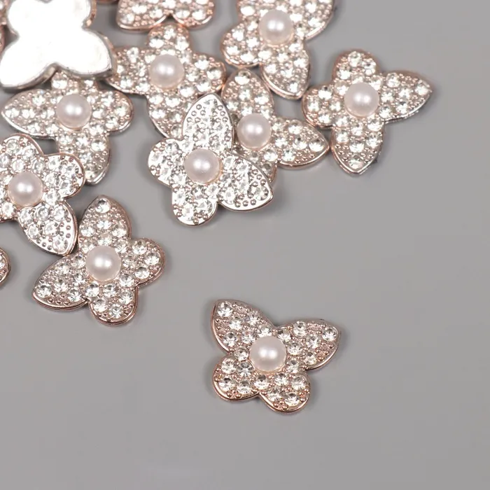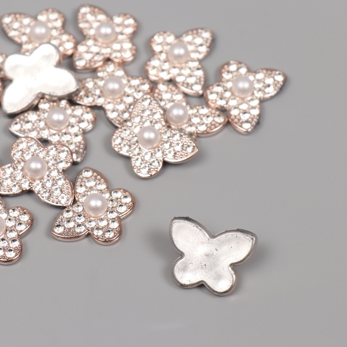 Декор для творчества пластик «Бабочка с жемчужиной», золото, набор 15 шт., 1.8×1.8×0.7 см — Характеристики