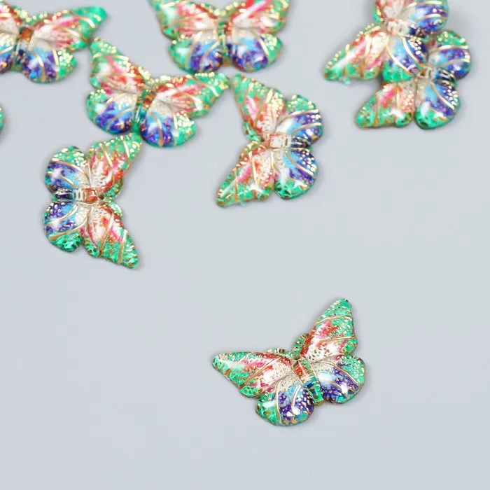 Декор для творчества пластик «Бабочка с золотыми точками», зелёный, 1.5×2.3 см