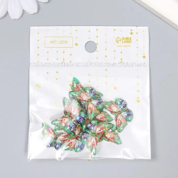 Декор для творчества пластик «Бабочка с золотыми точками», зелёный, 1.5×2.3 см — Характеристики
