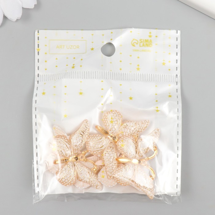 Декор для творчества пластик "Бабочка золотая сеть" 2,3х3,8 см