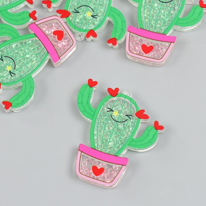 Декоративный элемент для творчества шейкер «Арт Узор. Кактус в горшке с сердечками с бисером», акрил, 0.5×4.8×4.9 см