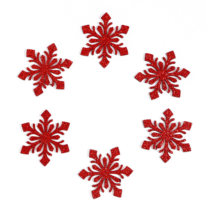 Новогодний декор «Снежинки», на клеевой основе, набор 6 шт., цвет красный