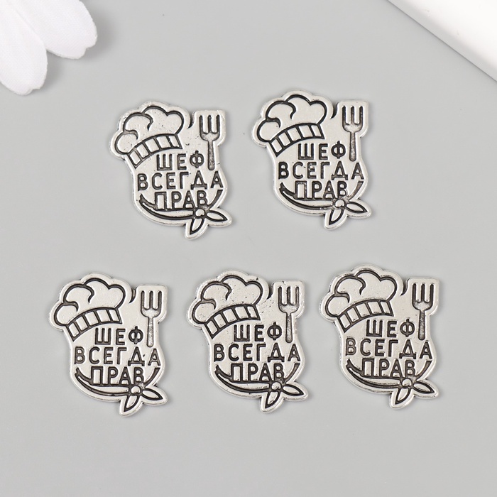 Декор металл для творчества «Повар - Шеф всегда прав», набор 5 шт., 2.5×2.1 см