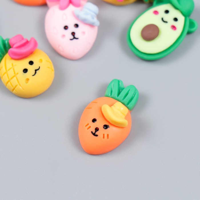 Декор для творчества пластик "Фруктики и овощи с рожицей" МИКС 1,6х1,5 см