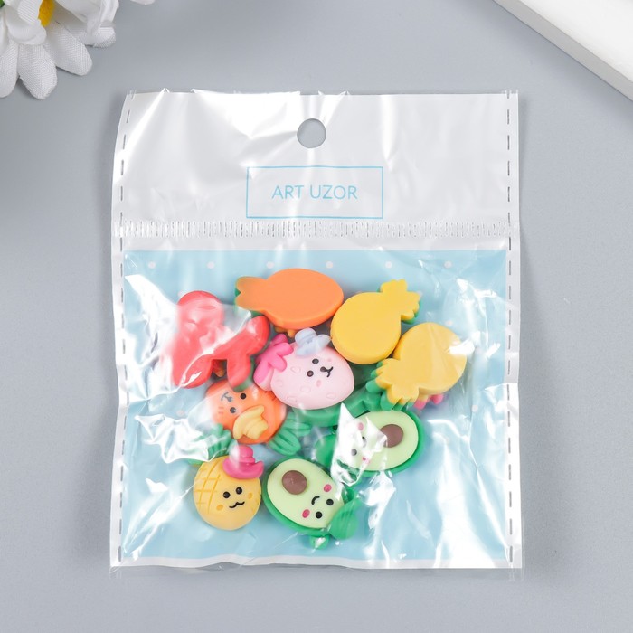 Декор для творчества пластик "Фруктики и овощи с рожицей" МИКС 1,6х1,5 см — Характеристики