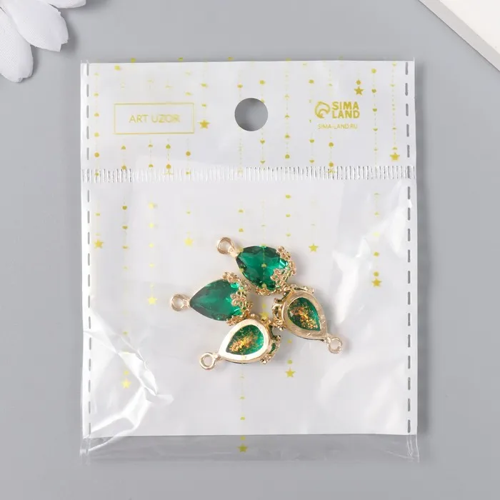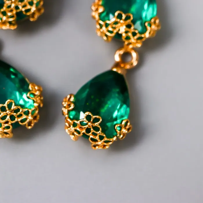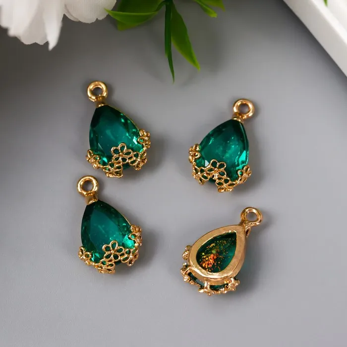 Декор для творчества пластик «Капля с золотыми цветочками», морская волна кристалл, 2×1.2 см — Характеристики