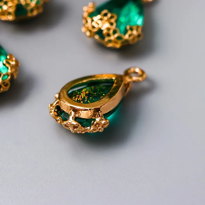 Декор для творчества пластик «Капля с золотыми цветочками», морская волна кристалл, 2×1.2 см
