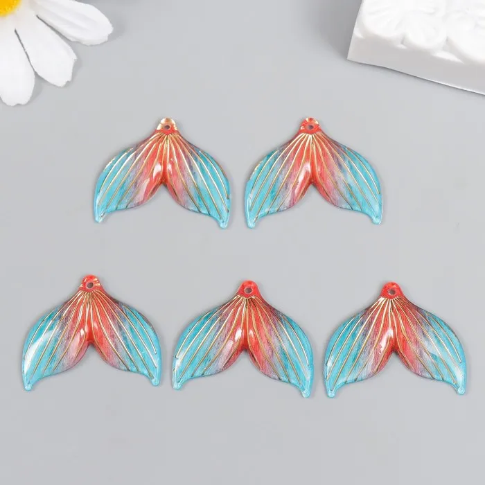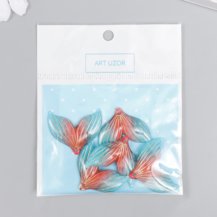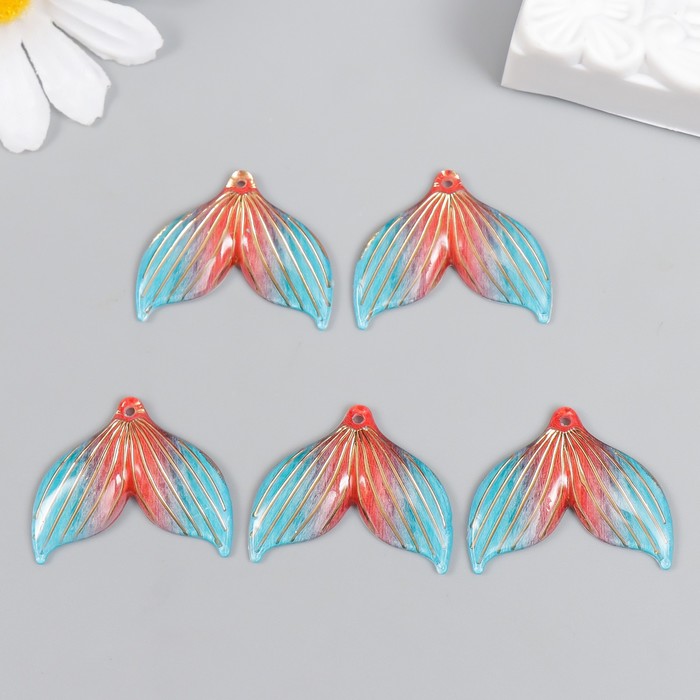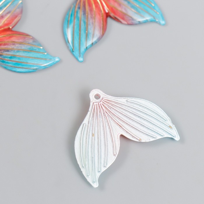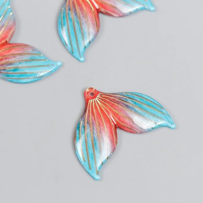 Декор для творчества пластик «Хвост русалки с золотыми линиями», оранжево-голубой, 3×2.4 см — Характеристики
