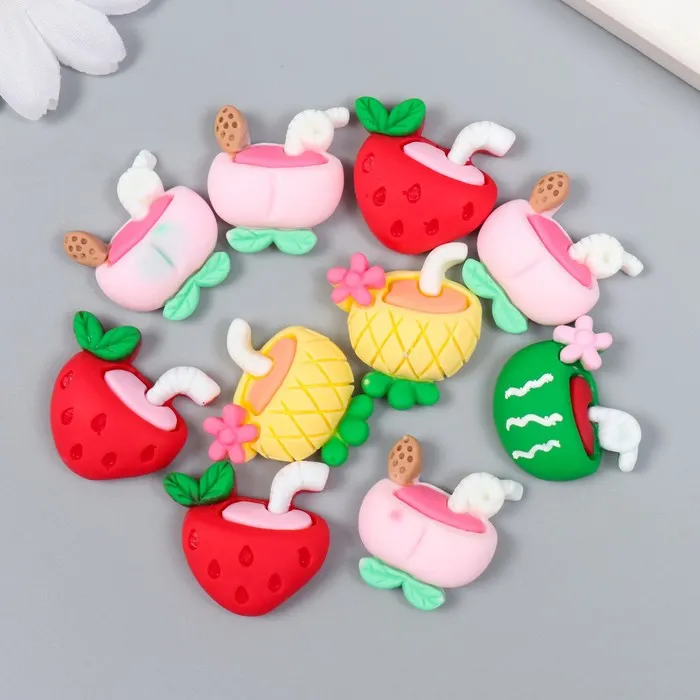 Декор для творчества пластик «Коктейль из фруктов», набор 10 шт., 2.1×1.9 см