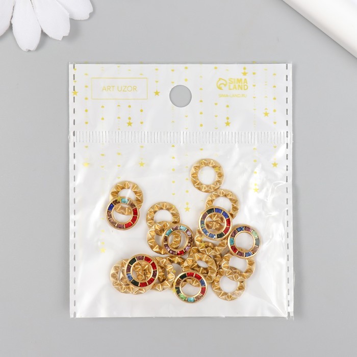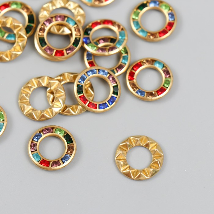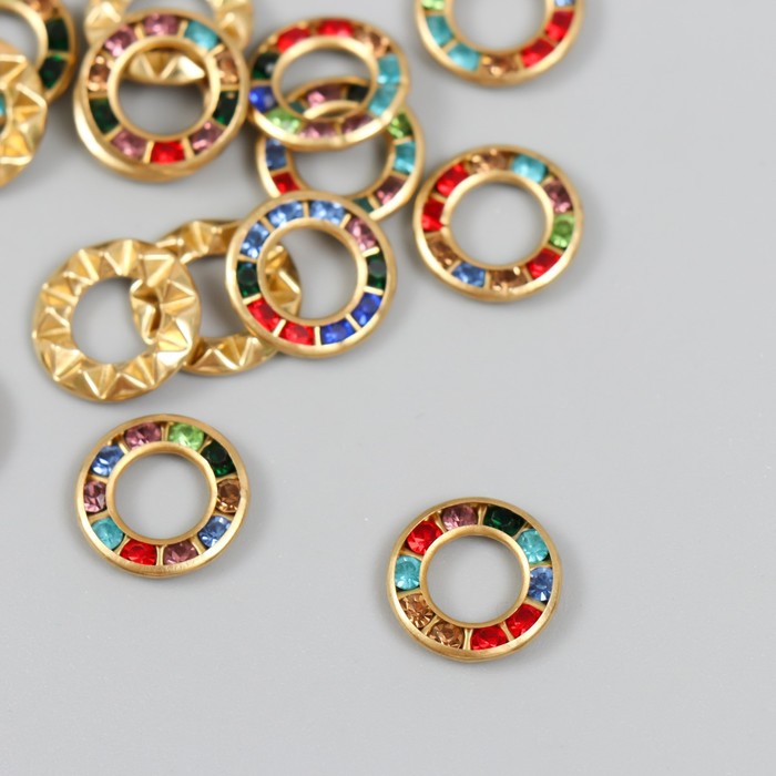 Декор для творчества пластик "Кольцо цветные кристаллы" набор 20 шт 1,2х1,2 см
