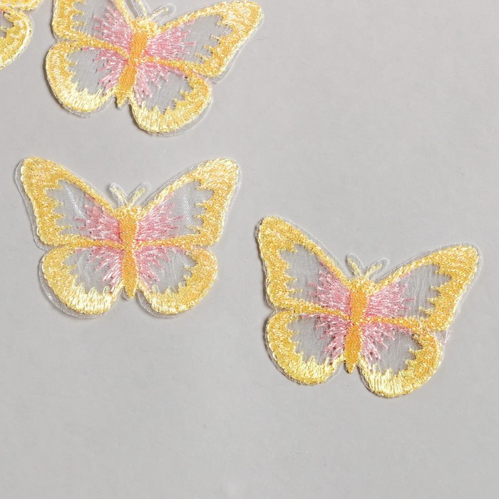 Декор для творчества текстиль вышивка «Бабочка жёлто-розовая», 4.3×5.5 см
