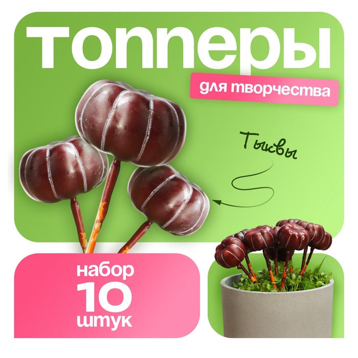 Топпер для творчества TAKE IT EASY «Тыковка», набор 10 шт., в цветы, в кашпо, 4×2 см