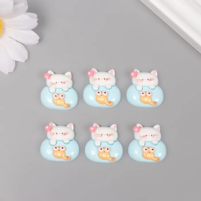 Декор для творчества пластик «Котик в аквариуме», набор 6 шт., 2×2×1 см