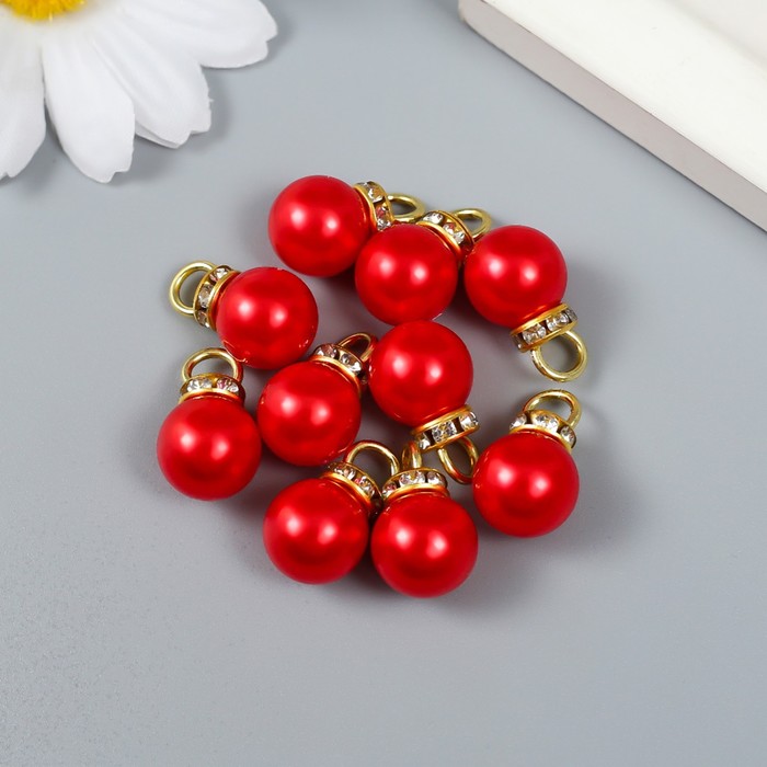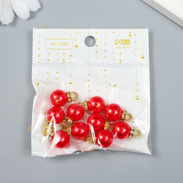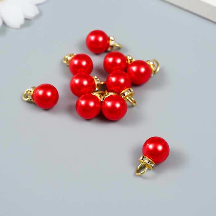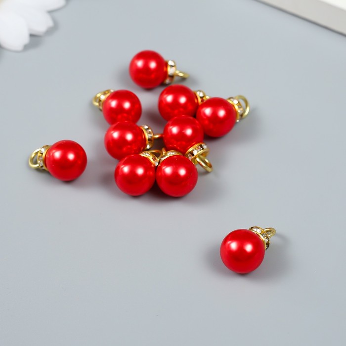 Декор для творчества пластик «Красная жемчужина с петелькой» набор 10 шт. 1×1.4 см