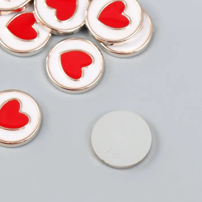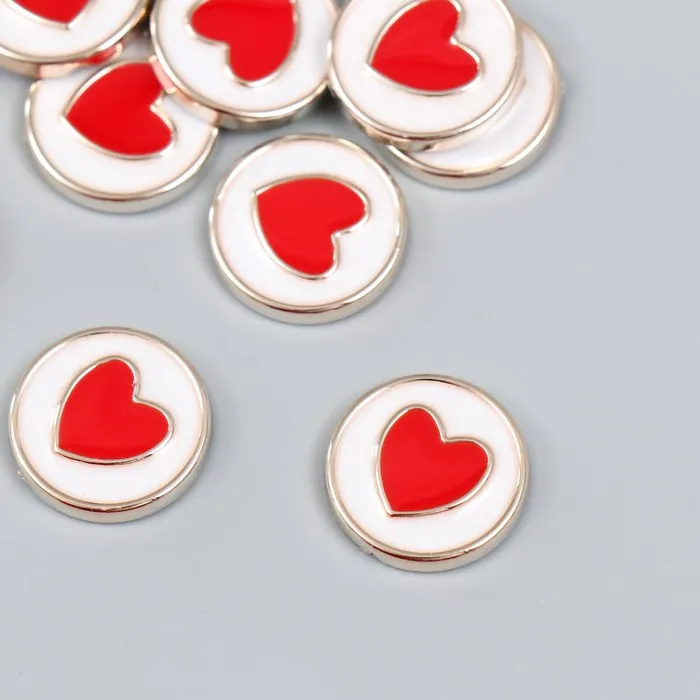 Декор для творчества пластик «Красное сердце в круге», белый, золото, 0.3×1.8×1.8 см