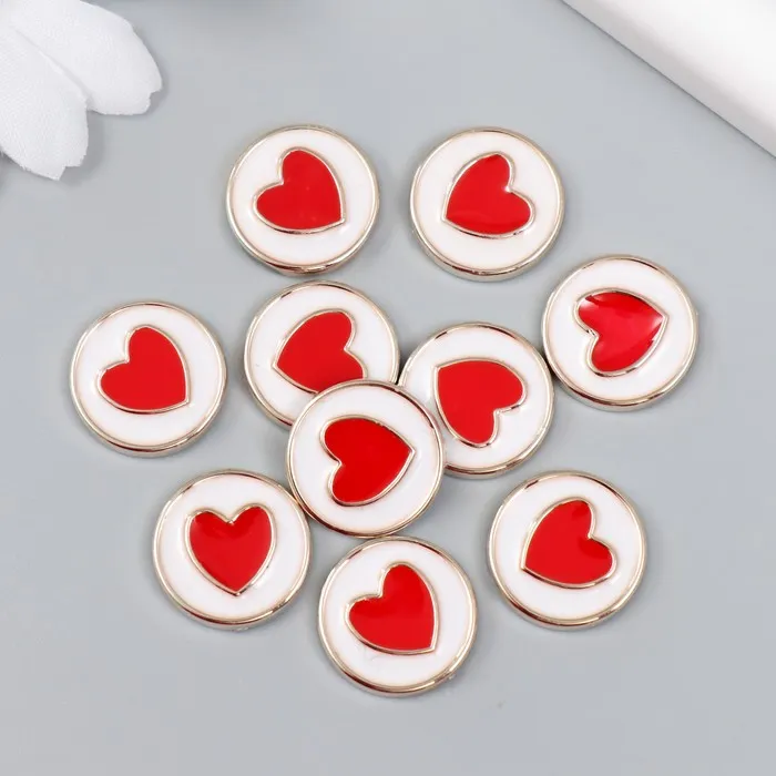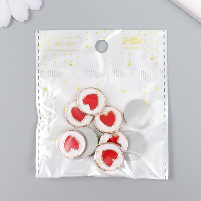 Декор для творчества пластик «Красное сердце в круге», белый, золото, 0.3×1.8×1.8 см — Характеристики