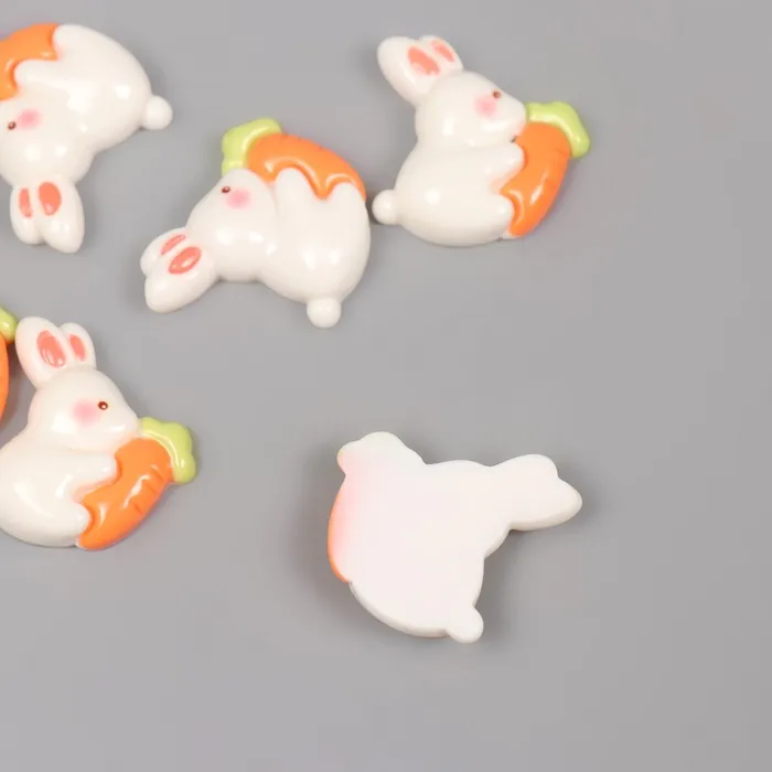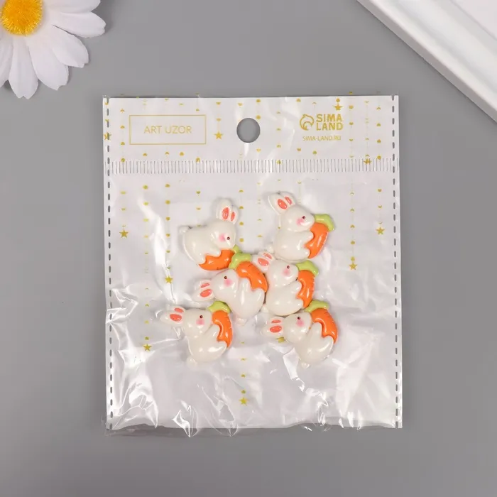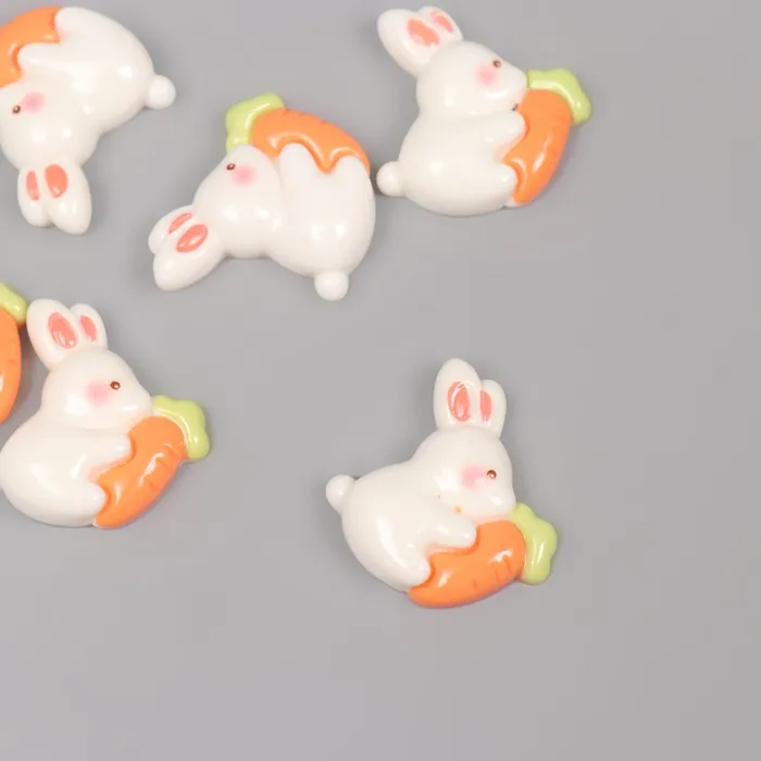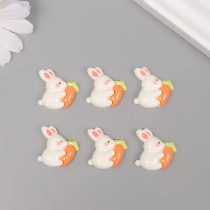 Декор для творчества пластик "Кролик с морковкой" набор 6 шт 2х2,3х0,8 см