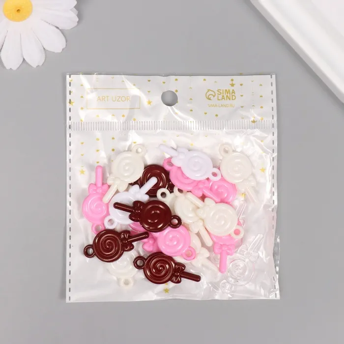 Декор для творчества пластик «Леденец на палочке», набор 20 г, 3.3×1.5×0.3 см, МИКС — Характеристики
