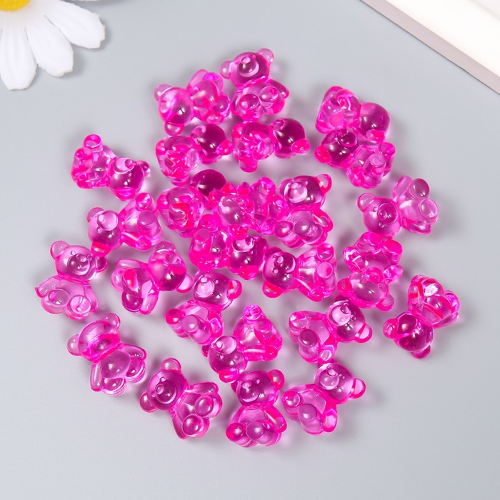 Декор для творчества пластик «Медвежонок», ярко-розовый, набор 25 шт., 1.8×1.5×1 см