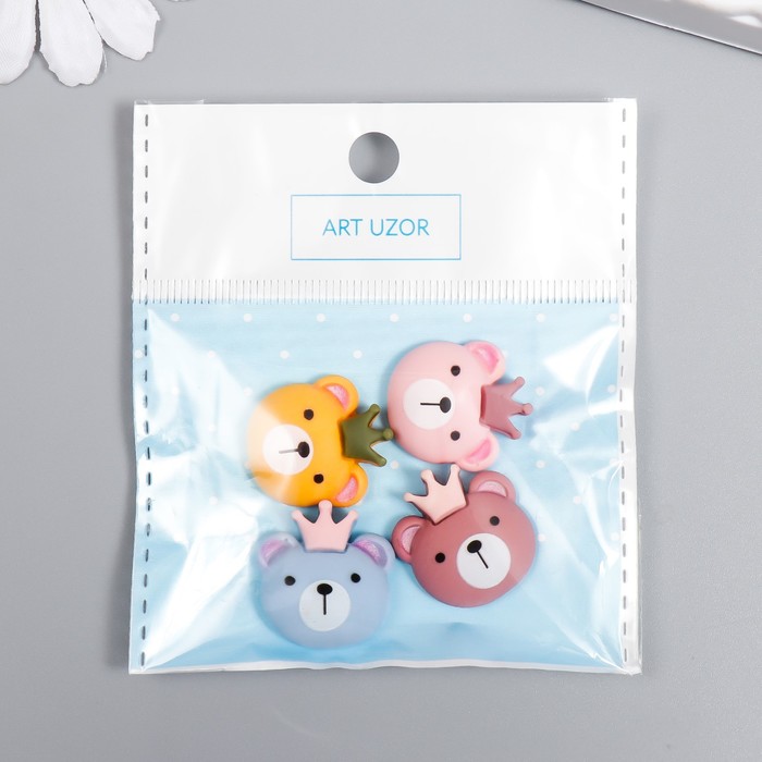 Декор для творчества пластик "Мишка с короной" МИКС 2х2 см