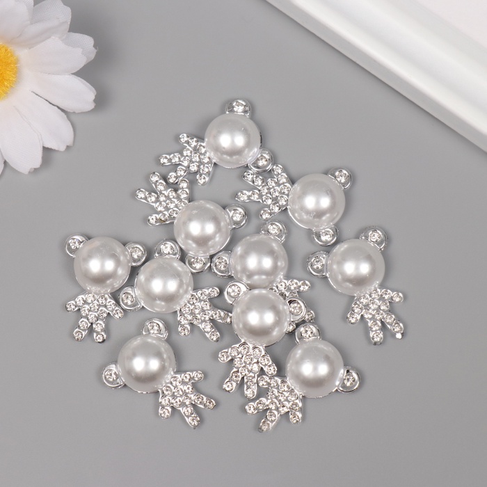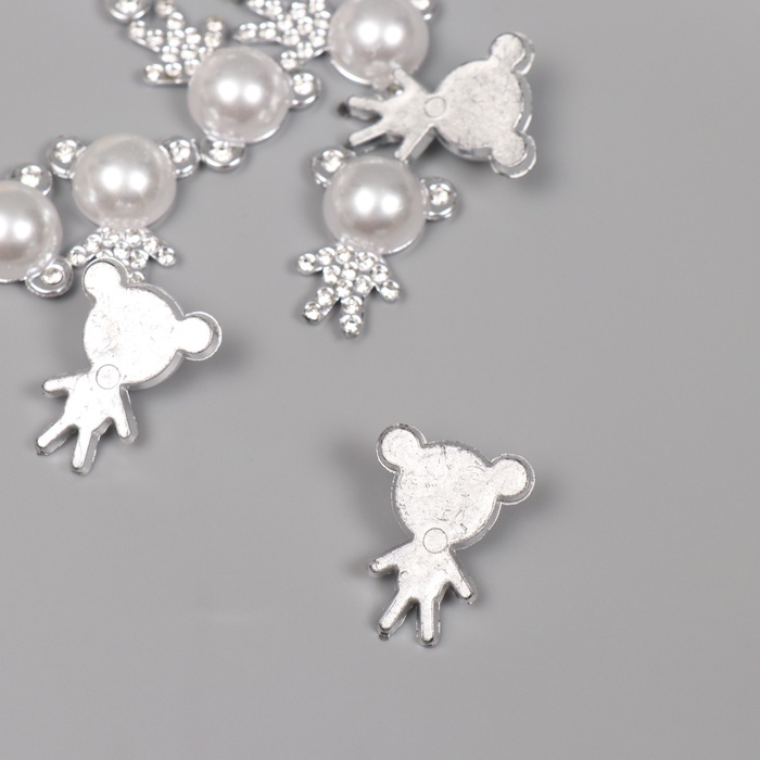 Декор для творчества пластик «Мишка со стразами», серебро, набор 10 шт., 2.5×2×1 см