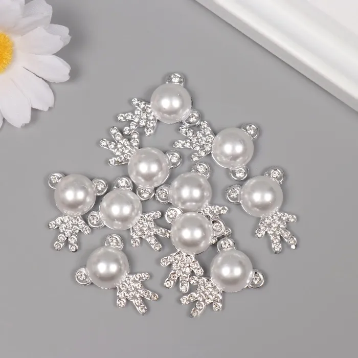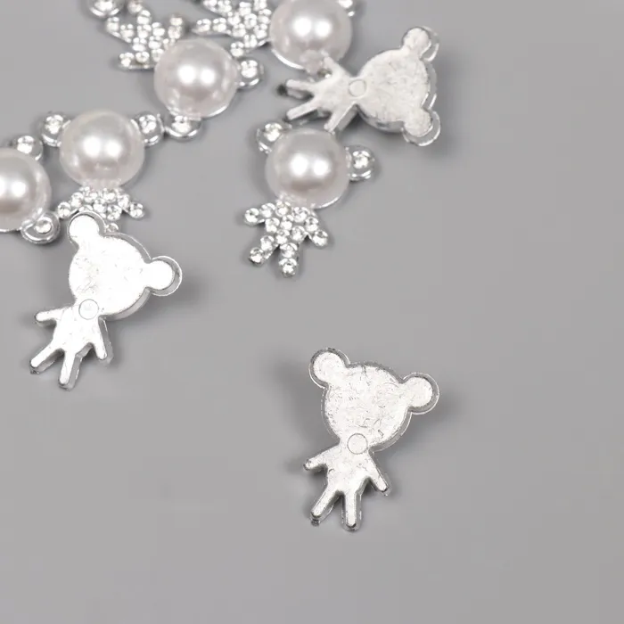 Декор для творчества пластик «Мишка со стразами», серебро, набор 10 шт., 2.5×2×1 см — Характеристики