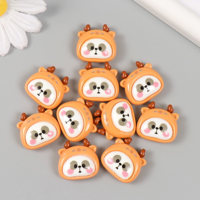 Декор для творчества пластик «Панда в шапке олене», 2.3×2.3×1 см