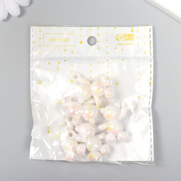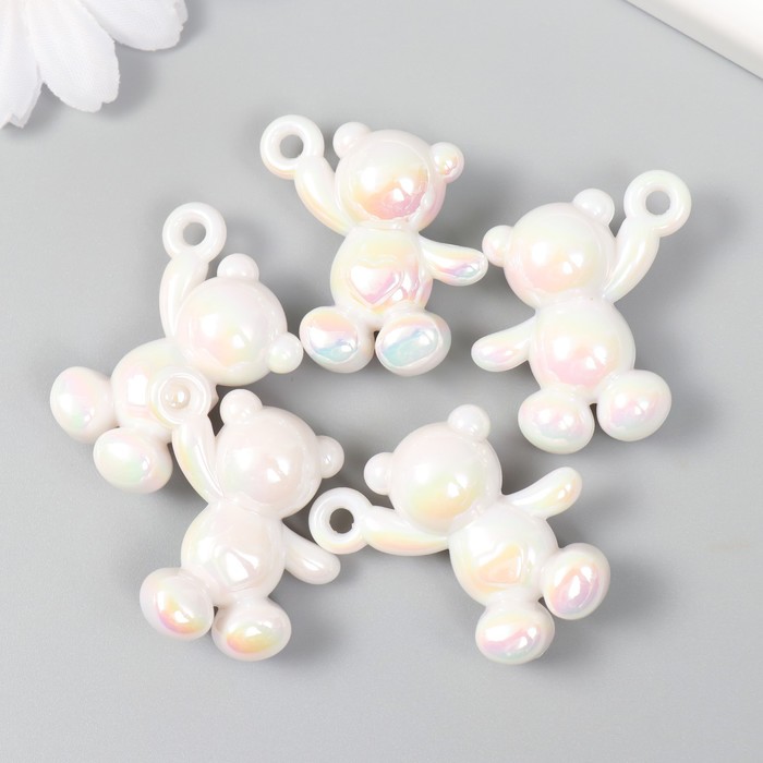 Декор для творчества пластик «Перламутровый мишка с петелькой» белый 3×1.4×3.1 см — Характеристики