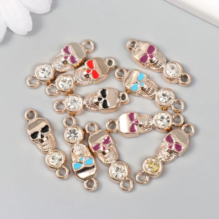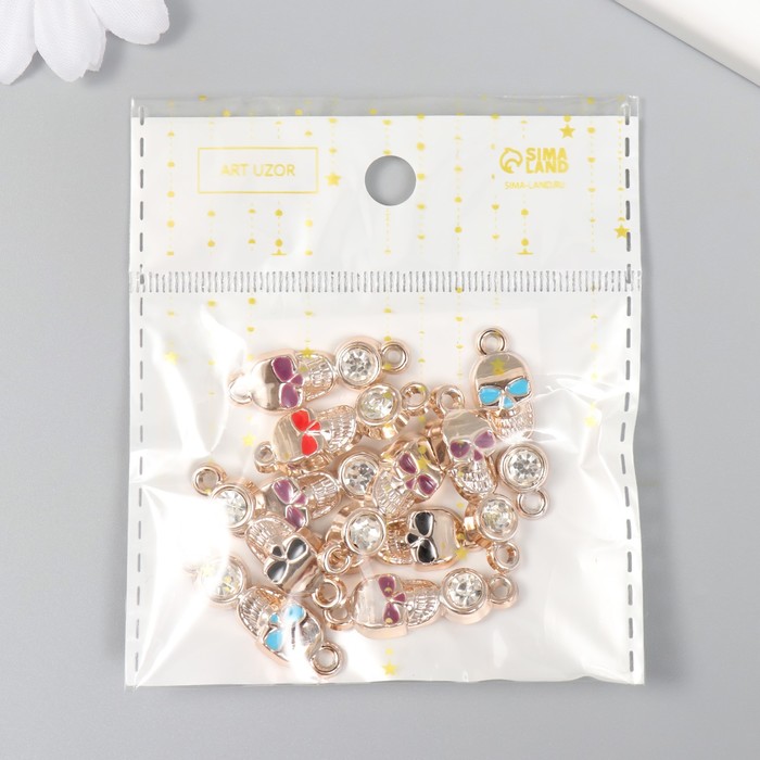 Декор для творчества пластик под металл "Череп со стразой" золото МИКС 0,9х0,5х3 см — Характеристики