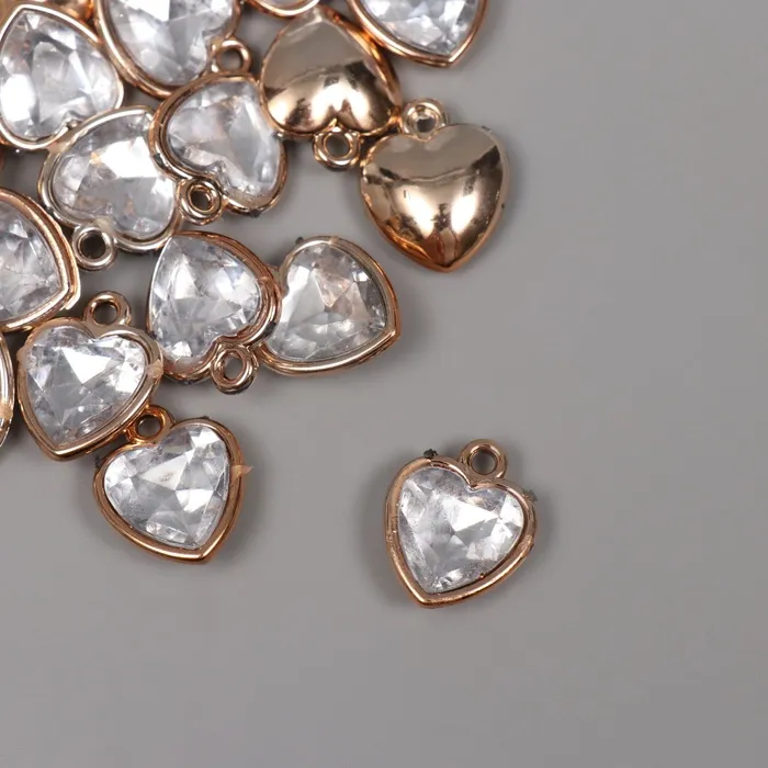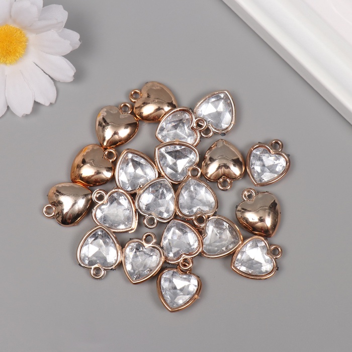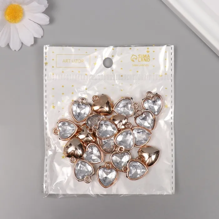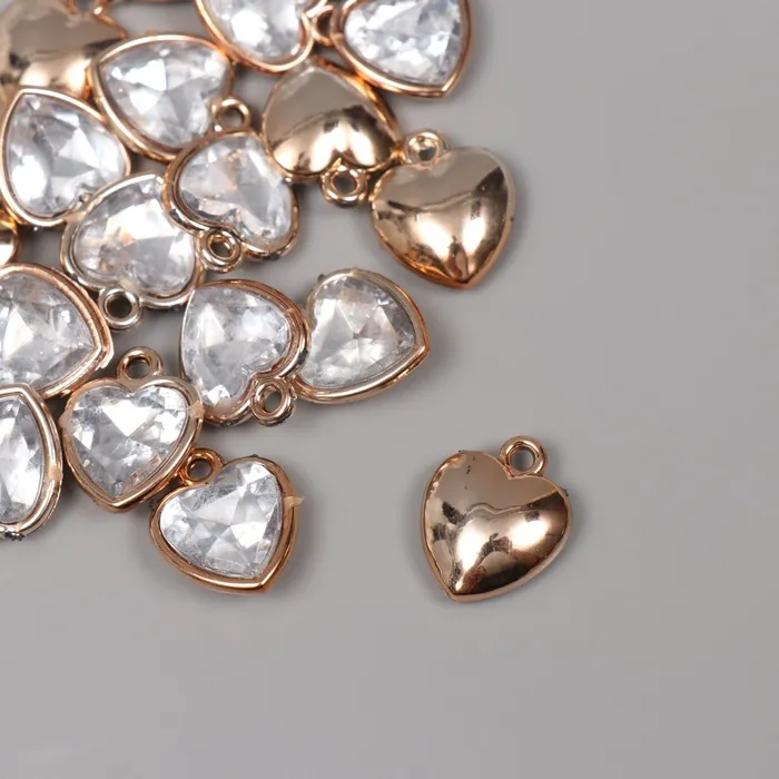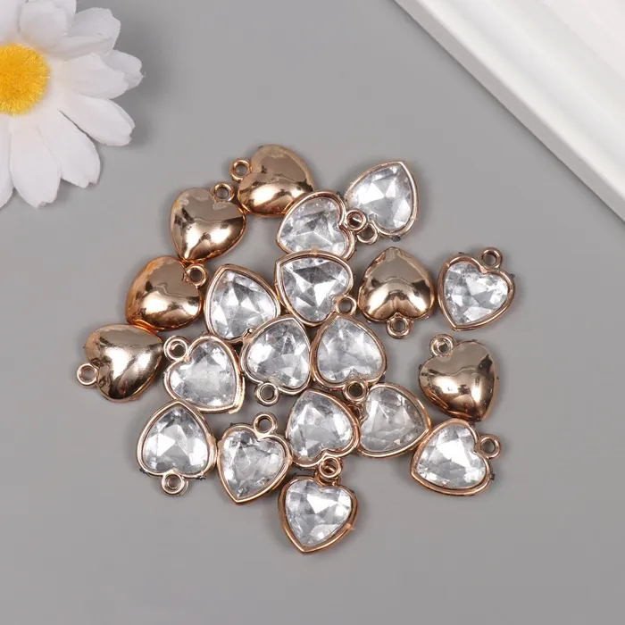 Декор для творчества пластик под металл «Сердце с кристаллом», золото, набор 20 шт., 2×1.5×0.6 см — Характеристики
