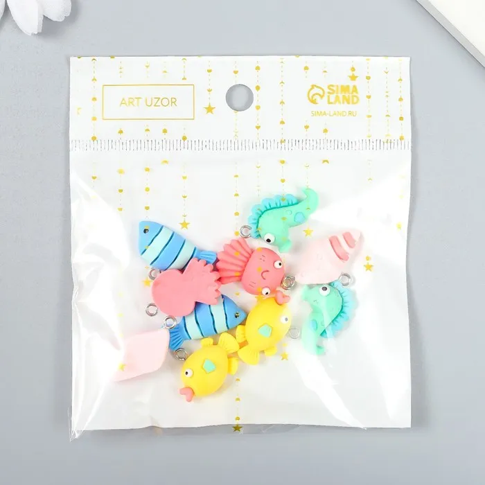 Декор для творчества пластик «Подводный мир с петелькой», 0.7×1.4×2.1 см, МИКС — Характеристики