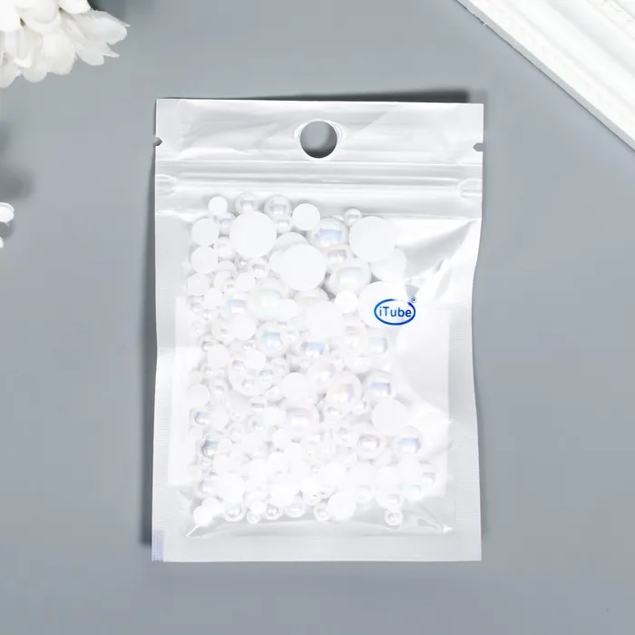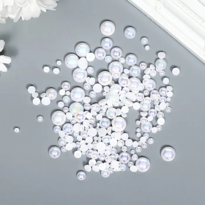 Декор для творчества пластик "Половинки бусин. Белый перламутр" d=3-10 мм, набор 10 гр — Характеристики