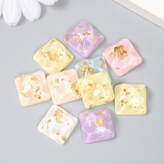 Декор для творчества пластик «Квадратики», фольга набор 10 шт., 1.6×1.6×0.7 см