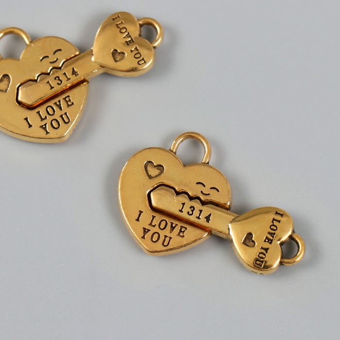 Замок магнитный металл «Ключик и замочек», золотой, 2.3×3.4×0.5 см, (набор 2 половинки)