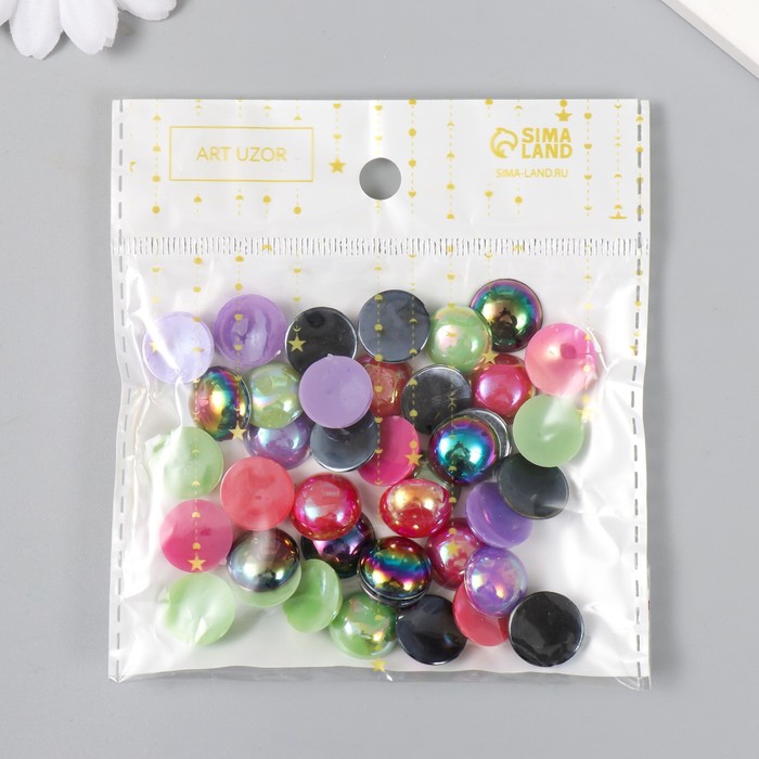 Декор для творчества пластик «Полужемчужина цветной перламутр», набор 40 шт., 1.4×1.4×0.4 см