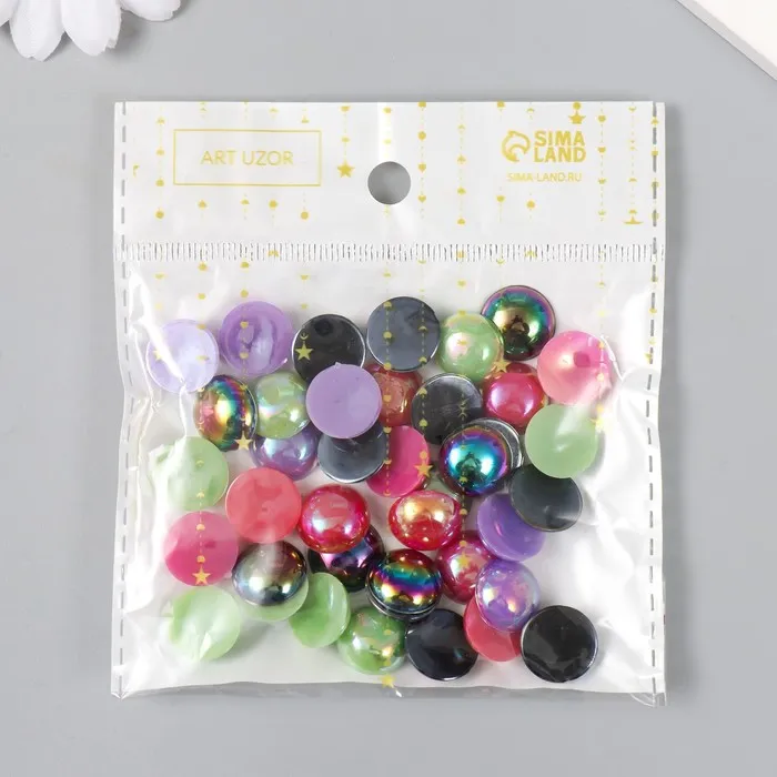 Декор для творчества пластик «Полужемчужина цветной перламутр», набор 40 шт., 1.4×1.4×0.4 см — Характеристики