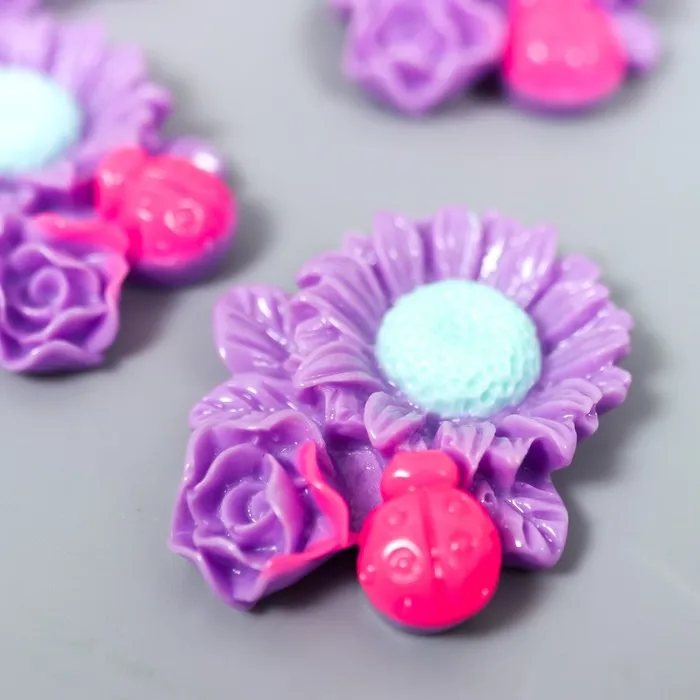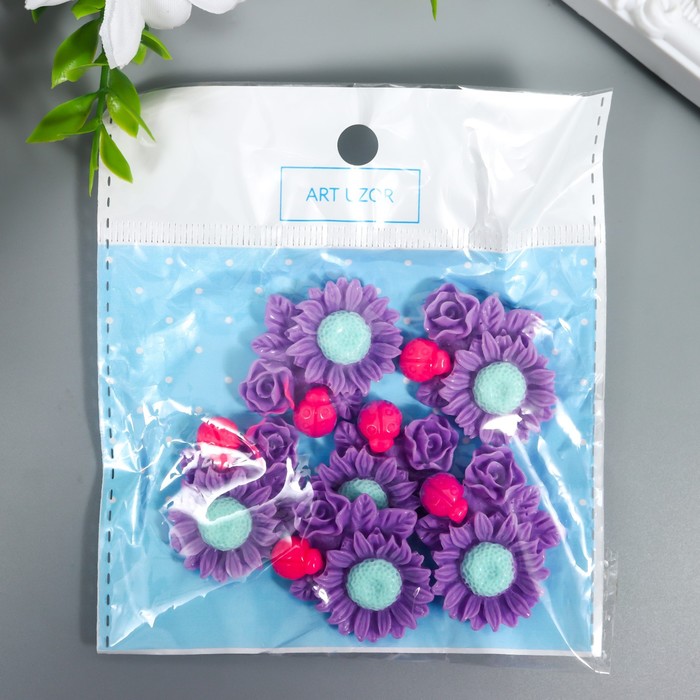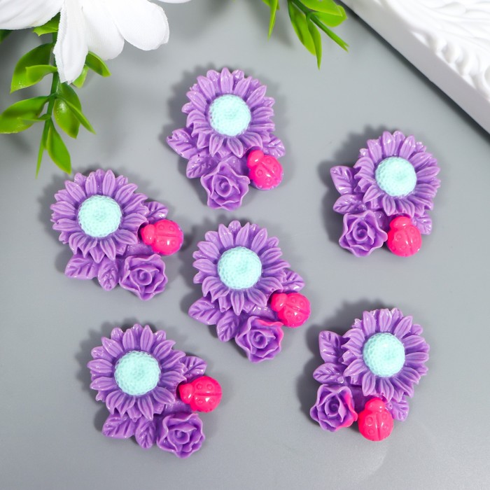 Декор для творчества пластик «Ромашка, роза и божья коровка», фиолетовый, 3.1×3.6 см — Характеристики