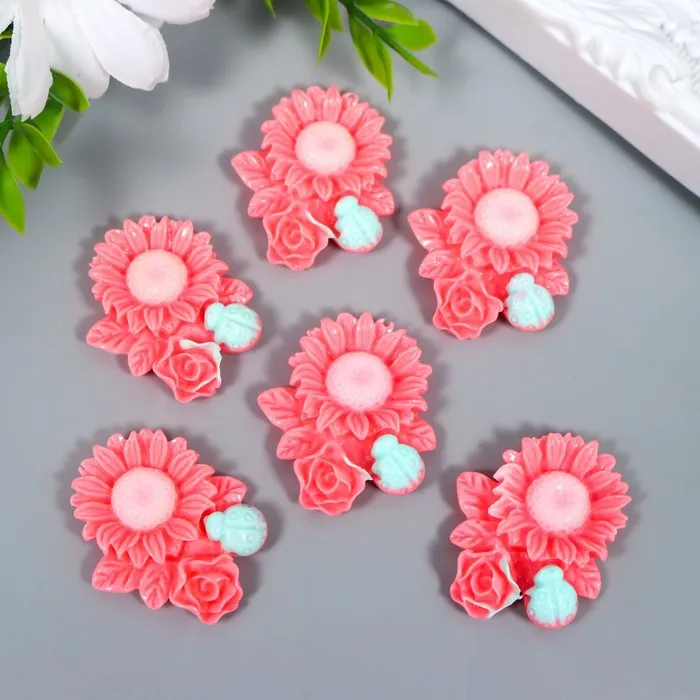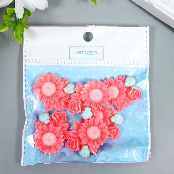 Декор для творчества пластик «Ромашка, роза и божья коровка», персиковый, 3.1×3.6 см — Характеристики