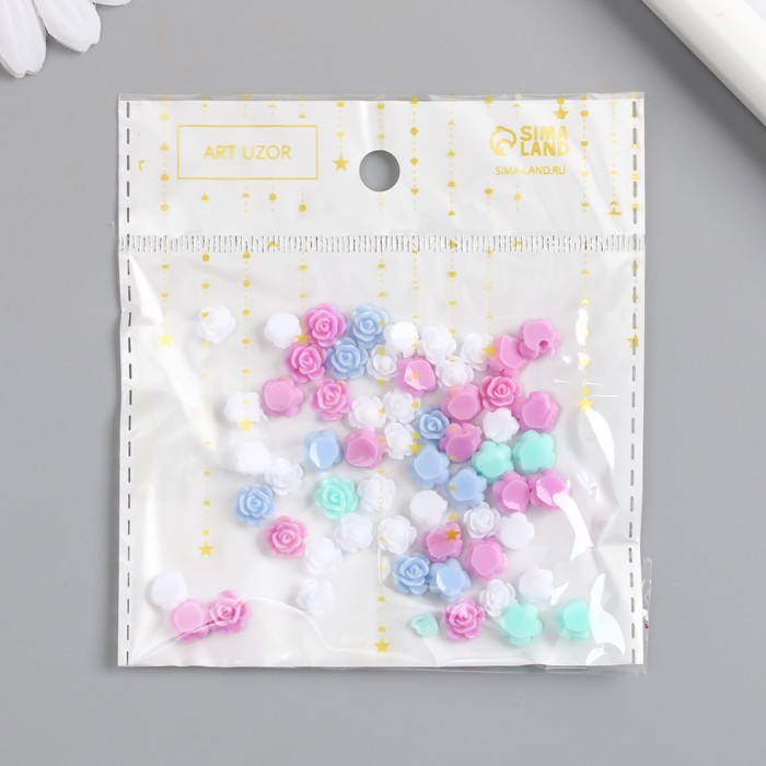 Декор для творчества пластик "Розочка" набор 60 шт пастельный 0,8х0,8 см