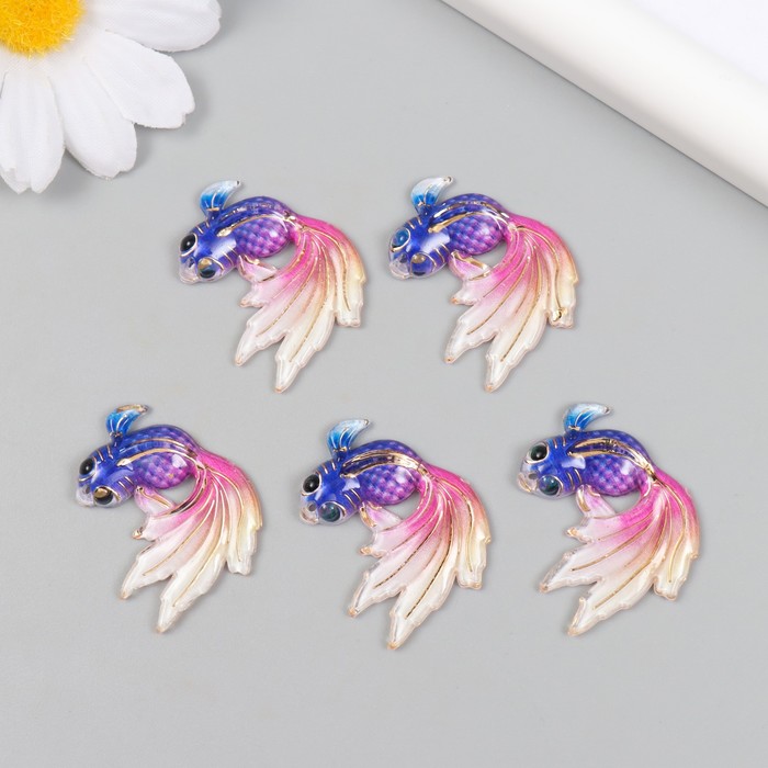 Декор для творчества пластик "Рыбка фиолет с розовым хвостом" с золотом 2,5х3 см