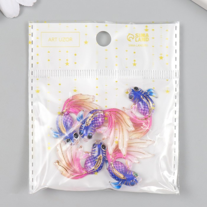 Декор для творчества пластик "Рыбка фиолет с розовым хвостом" с золотом 2,5х3 см — Характеристики
