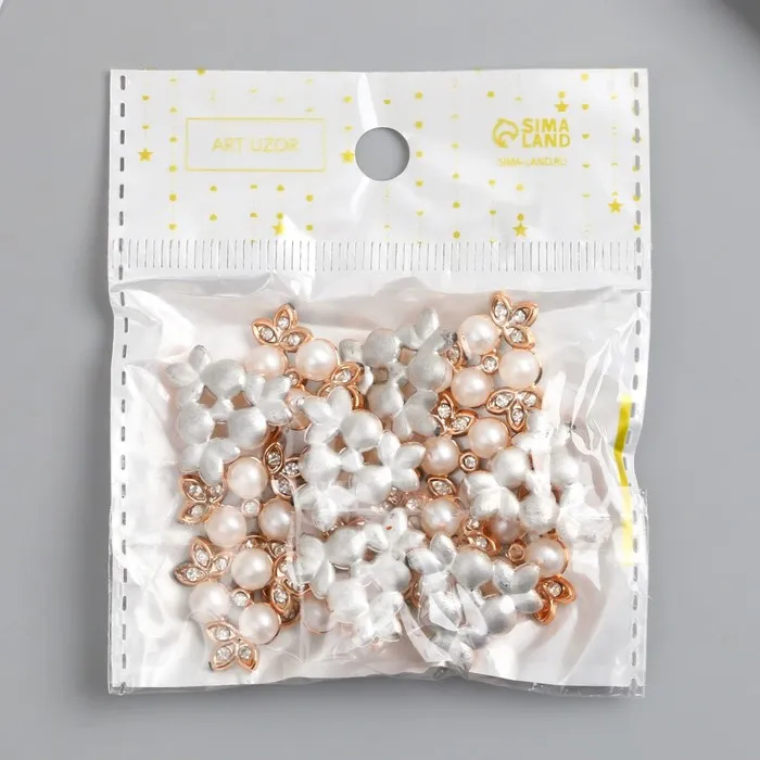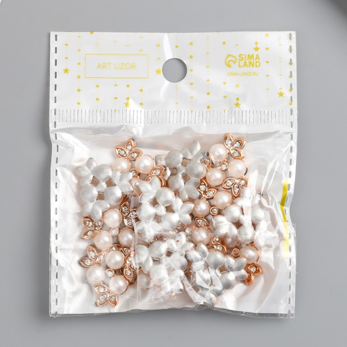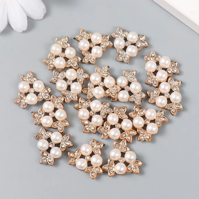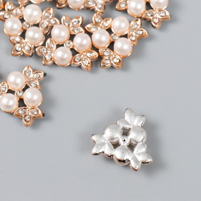 Декор для творчества пластик, стразы "3 жемчужины с листиками" набор 15 шт 2х2 см — Характеристики