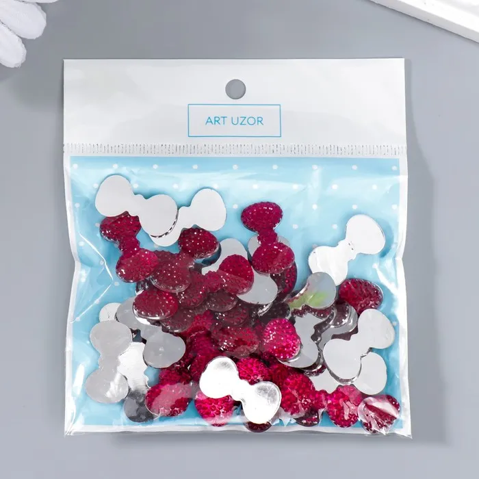 Декор для творчества пластик «Стразы Бант. Ярко-розовый», набор 40 шт., 1.3×2.4 см — Характеристики