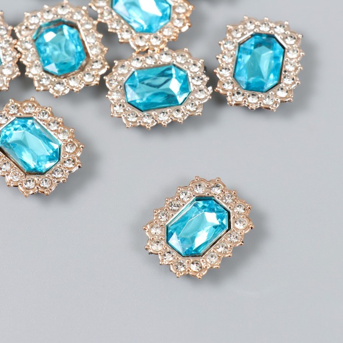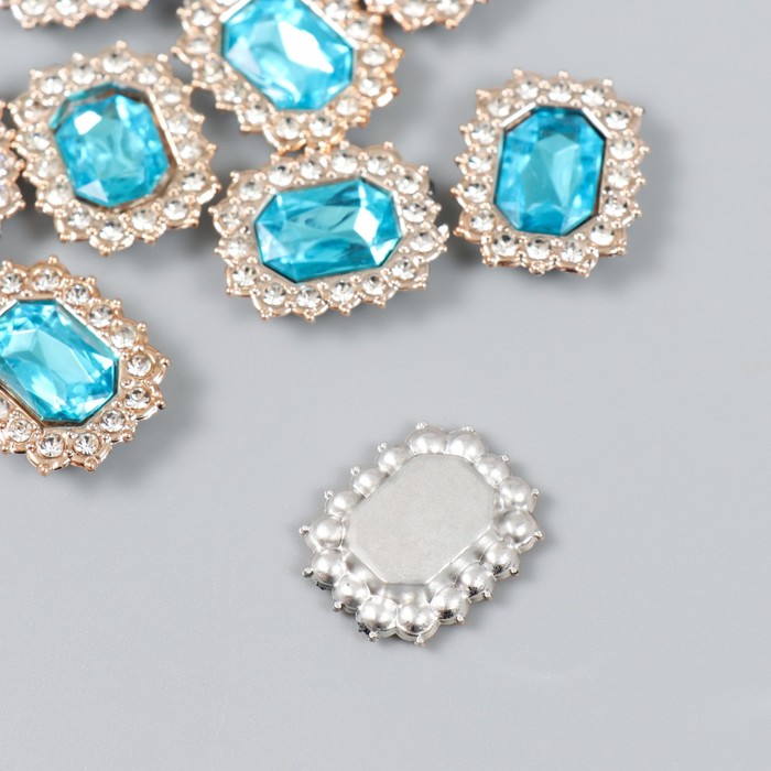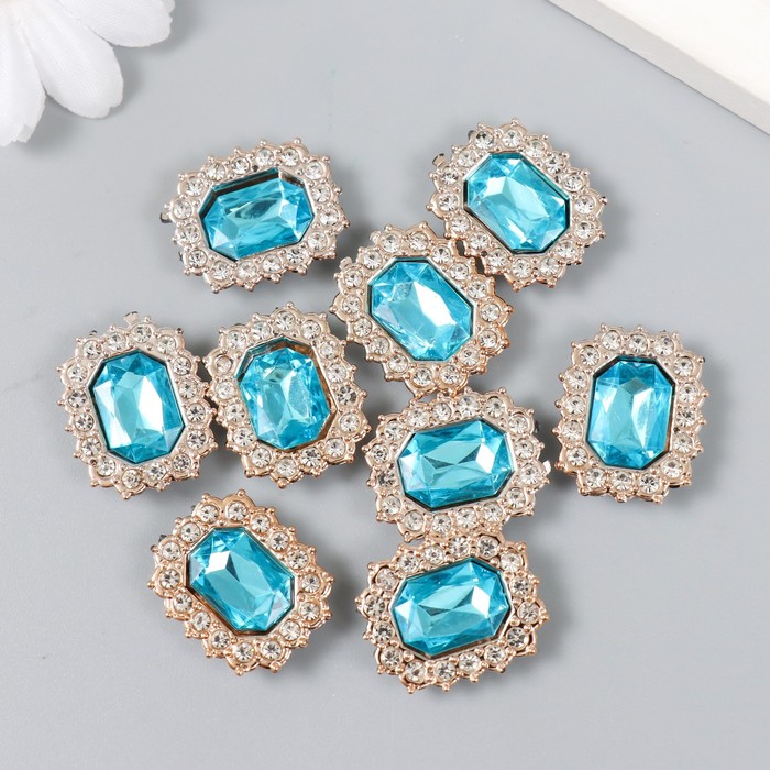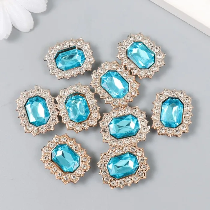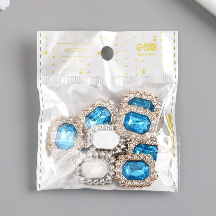 Декор для творчества пластик, стразы "Медальон восьмиугольный" н-р 10 шт голубой 1,8х2,4 см